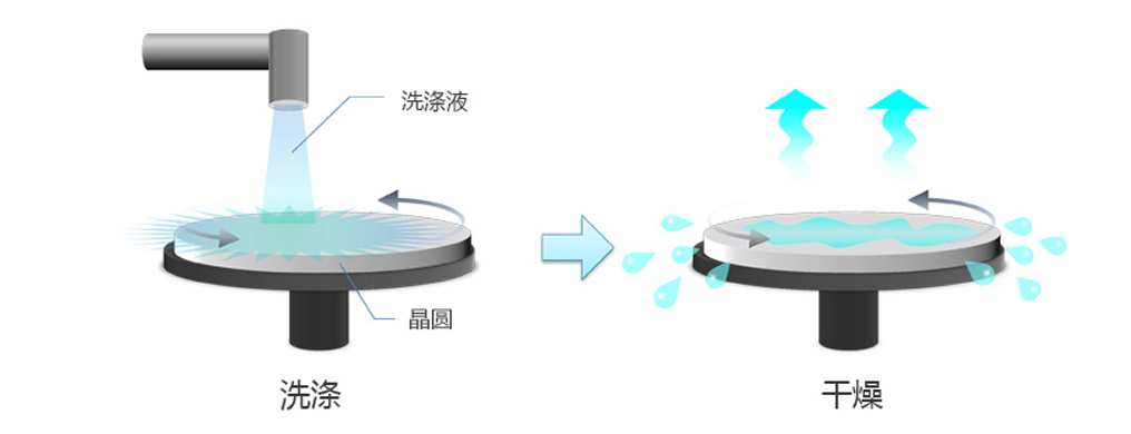 這是“洗滌”過程。洗滌晶圓,去除附著在其表面上的異物。 這是因為晶片上的異物在隨后的晶體生長過程和光刻過程中容易引起不良。 在洗滌中,用諸如過氧化氫,鹽酸,氫氟酸等洗滌溶液除去晶片上的顆粒、金屬和有機物質等異物。 然后使用非常干凈的超純水沖洗掉洗滌溶液化學品并進行旋轉干燥。 這是因為在不干燥狀態下它會吸收空氣中的顆粒,會再次被污染,使得所作的洗滌無效。